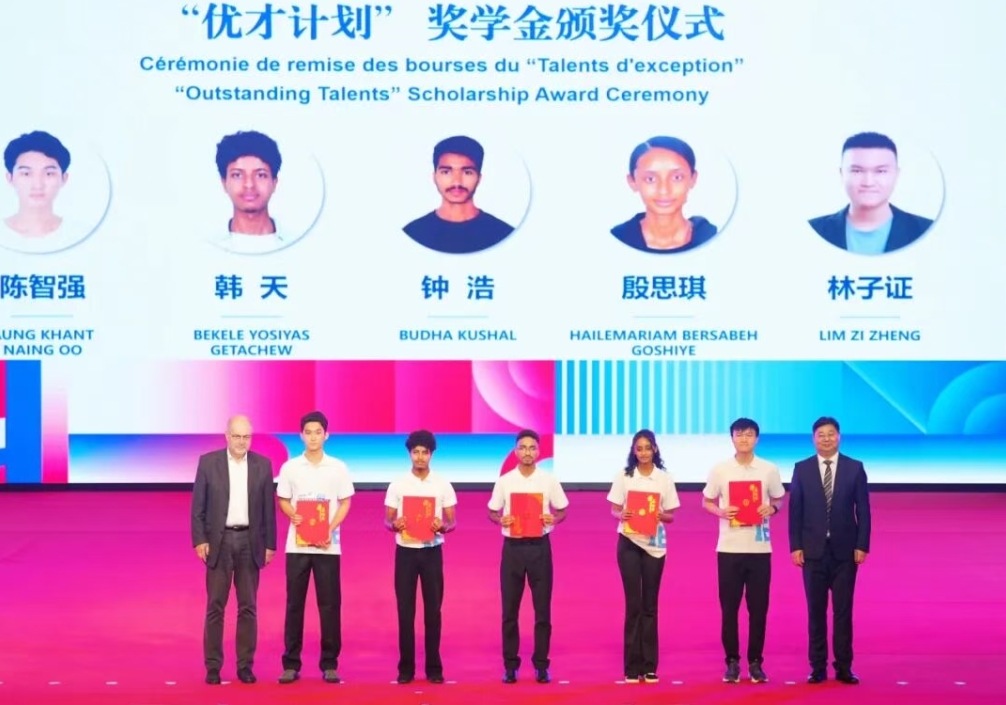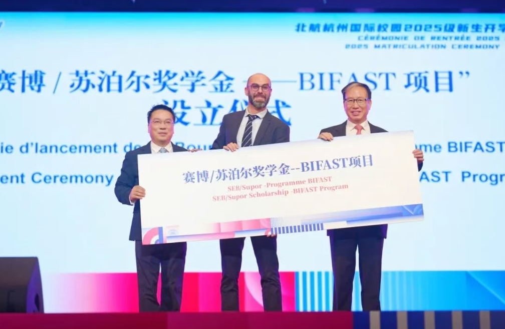 科赛、北航国新院党委书记孙青峰共同为荣获“优才计划”奖学金的国际新生颁奖。