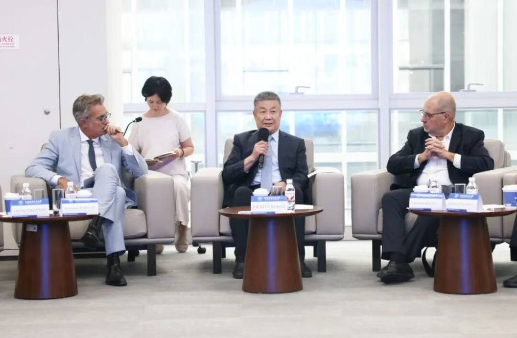 赵巍胜、尚苏和尼布雷尔共同为荣获校长奖学金的新生颁奖。