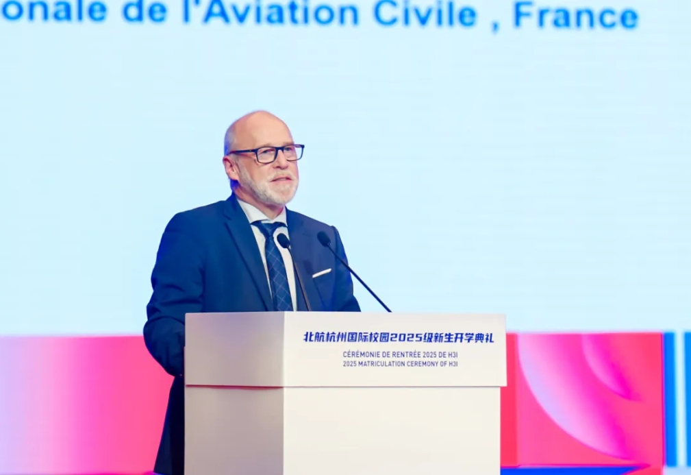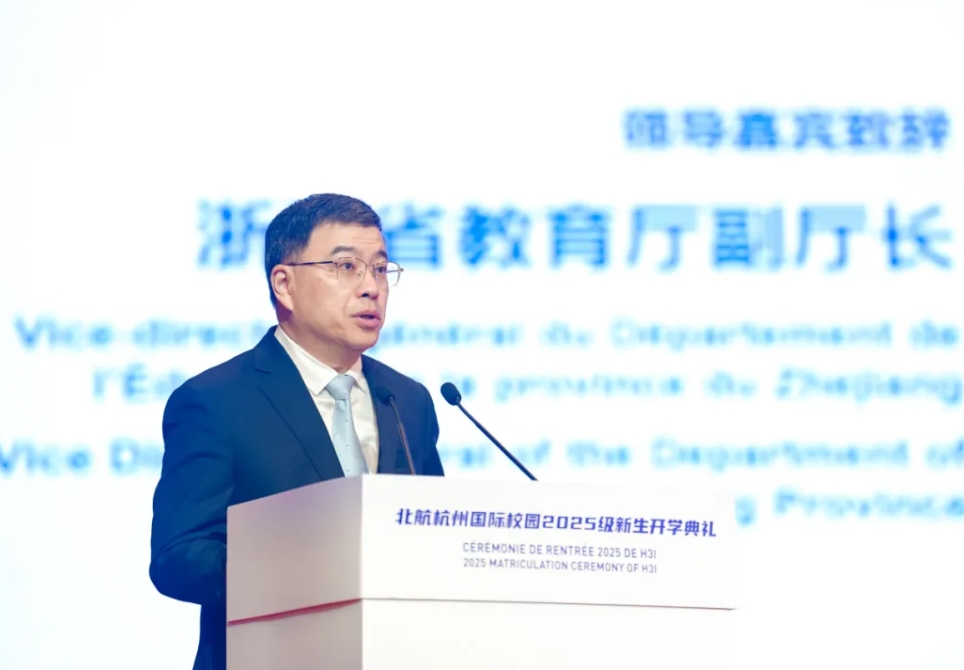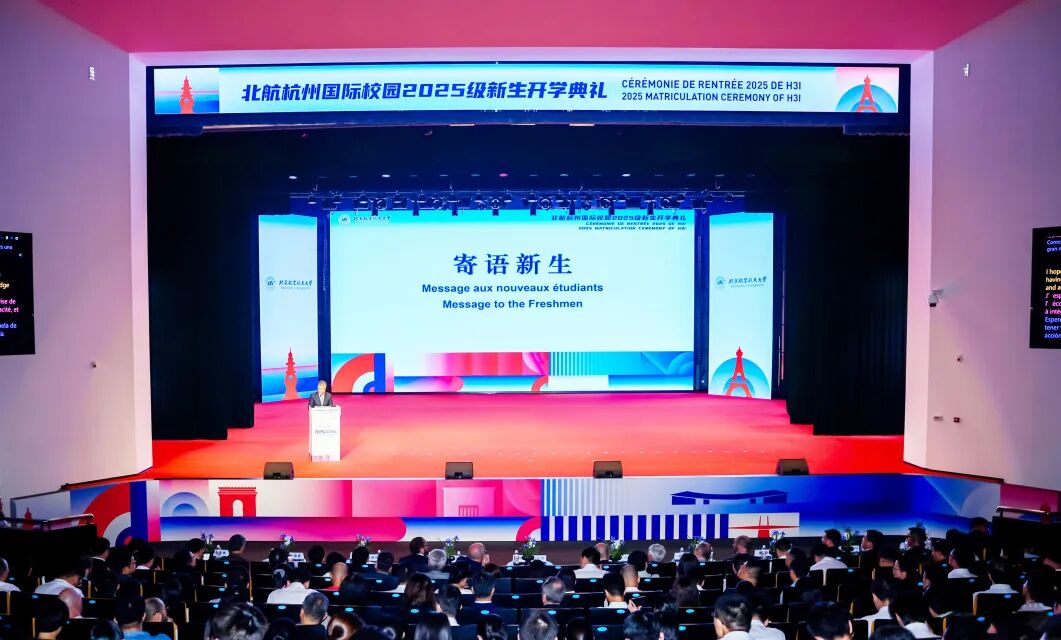北航新闻网9月30日电(记者 任和 通讯员 谢雨倩 宋超 马证超 王琳)9月29日上午,杭州国际校园2025级新生开学典礼在音乐厅举行。北航党委书记赵长禄,法国法兰西工程院院士、2024年“中国政府友谊奖”获得者、北航中欧委员会联合主席杰拉德·科赛,法国国立民航大学校长奥利维耶·尚苏、法国国立应用科学学院集团里昂董事会主席克里斯蒂安·尼布雷尔、法国国立应用科学学院里昂校长佛雷德里克·弗提亚都、法国国立应用科学学院里昂国际关系副校长达米安·法布雷格、西班牙瓦伦西亚理工大学副校长何塞·蒙塞拉特、浙江省教育厅副厅长舒培冬、北航副校长赵巍胜及北航中法航空学院、北航中法未来科技学院、国际教育中心共700余名中外本研新生参加活动。