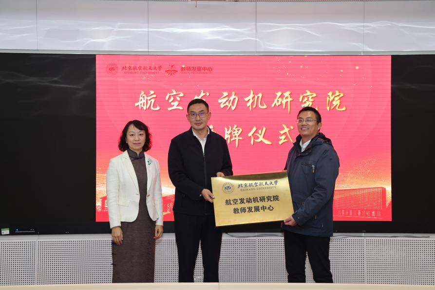 在授牌仪式上,航空发动机研究院党委书记袁星对教师发展工作做了详细介绍。他表示,会在未来的工作中多维度打通教师交流通道,促进教师间的交流与合作,实施个性化教师发展策略,为教师个人成长提供更广阔的空间。随后,校党委副书记程波为航空发动机研究院教师发展中心授牌。