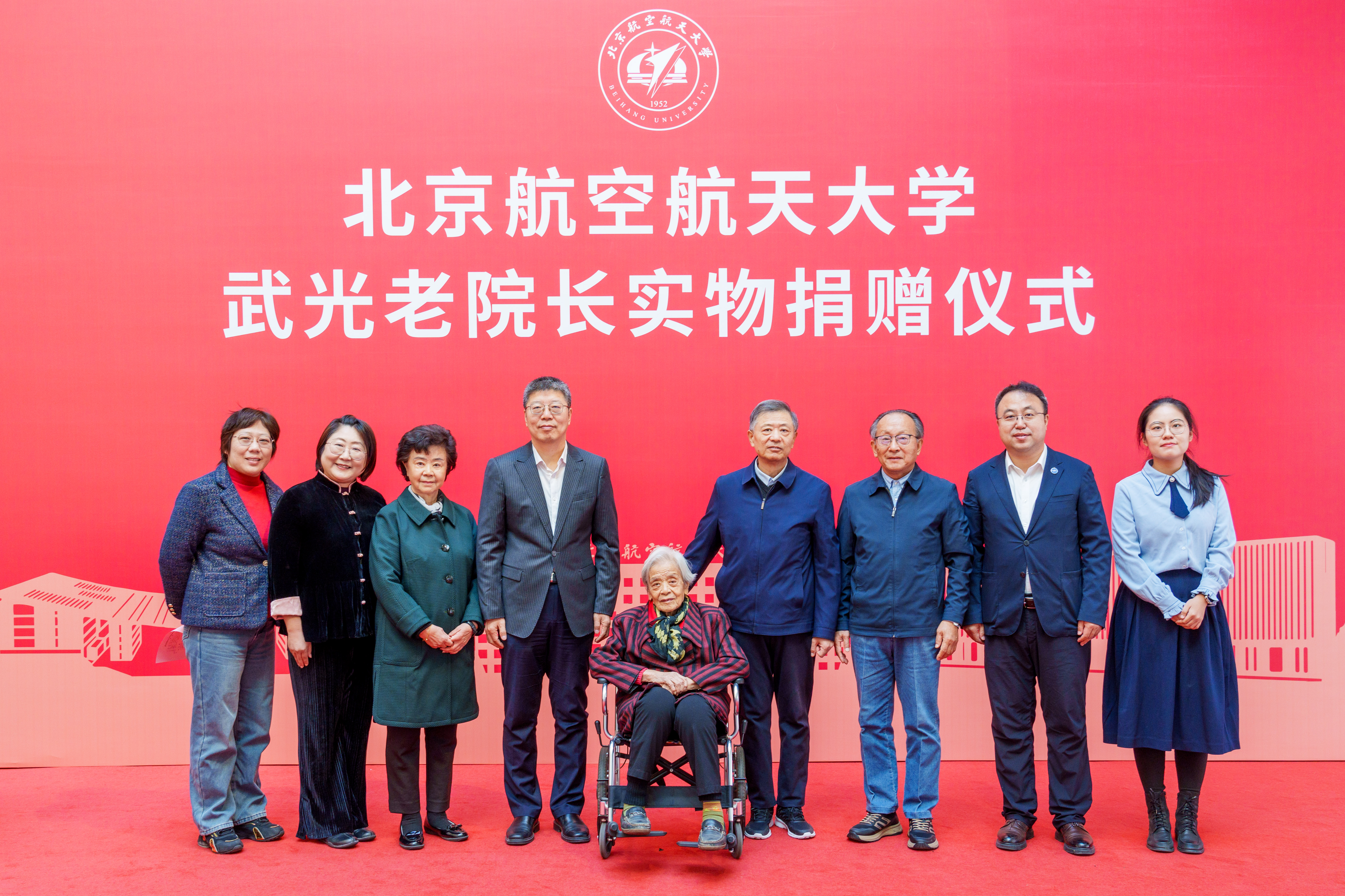 捐赠仪式结束后,领导和捐赠亲属代表合影留念,随后,亲属代表参观了北航校史馆武光老院长专题展区。