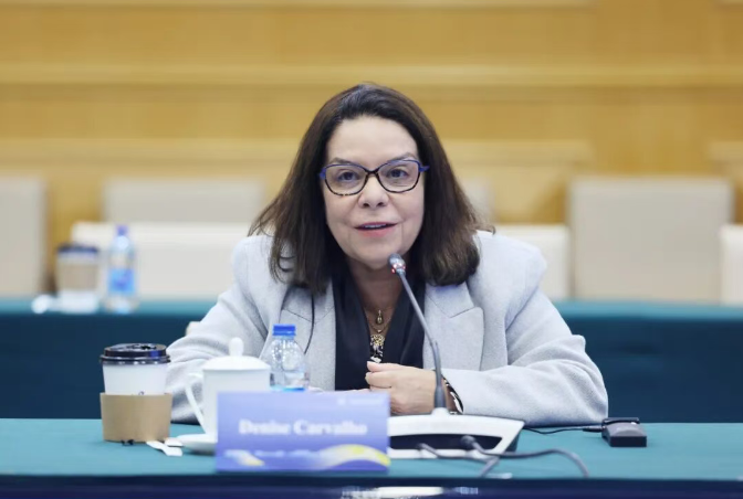 丹妮斯·卡瓦略对北航的热情接待表示衷心感谢,并转达了巴西教育部部长卡米洛·桑塔纳(Camilo Santana)对北航的亲切问候。她指出,巴西高度重视与中国的合作,在中巴两国元首的战略引领下,双方在高层次人才培养、高水平科技创新等关键领域收获显著成果、取得突出进展。北航作为中国顶尖学府,是巴西极为重要的合作伙伴之一。展望未来,巴方愿与北航携手,共同支持更多学者、学生双向交流,推动全方位多领域深度合作,共同助力两国教育科技合作迈向新高度。