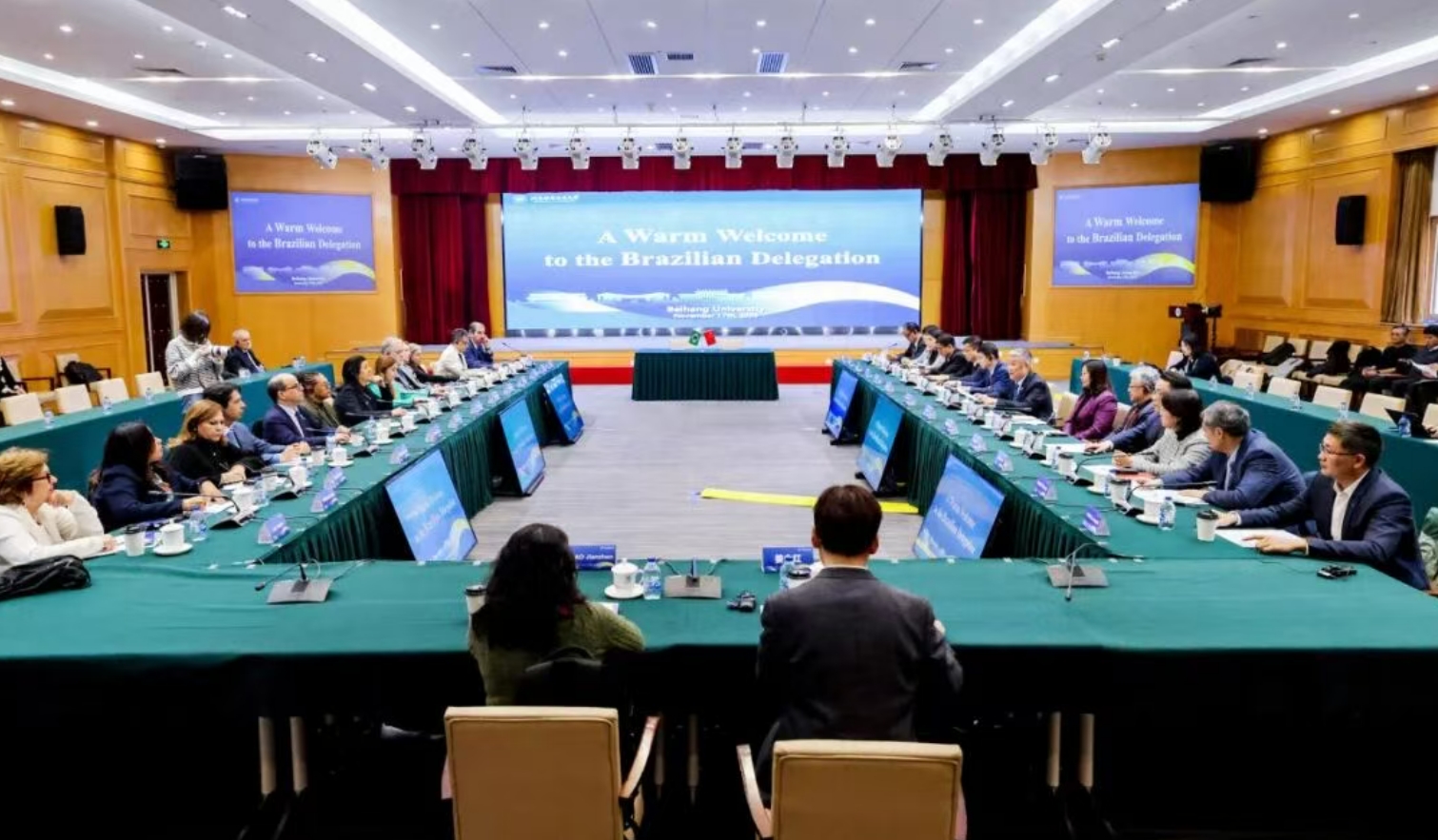 签约仪式后,双方围绕人才培养、科学研究等展开合作会谈。北航国际合作部部长白琳介绍了北航在国际学生培养方面的优势与成果。北航重点区域国别负责人机制对巴西合作负责人刁训刚介绍了北航巴西中心建设方案。巴西大学国际合作集团及巴西11所高校代表团成员先后发言,表示感谢北航热情接待,希望拓展中巴高校在教育教学、人才培养、科学创新等领域的合作深度与广度,为全球可持续发展培养拔尖创新人才、贡献智慧和力量。