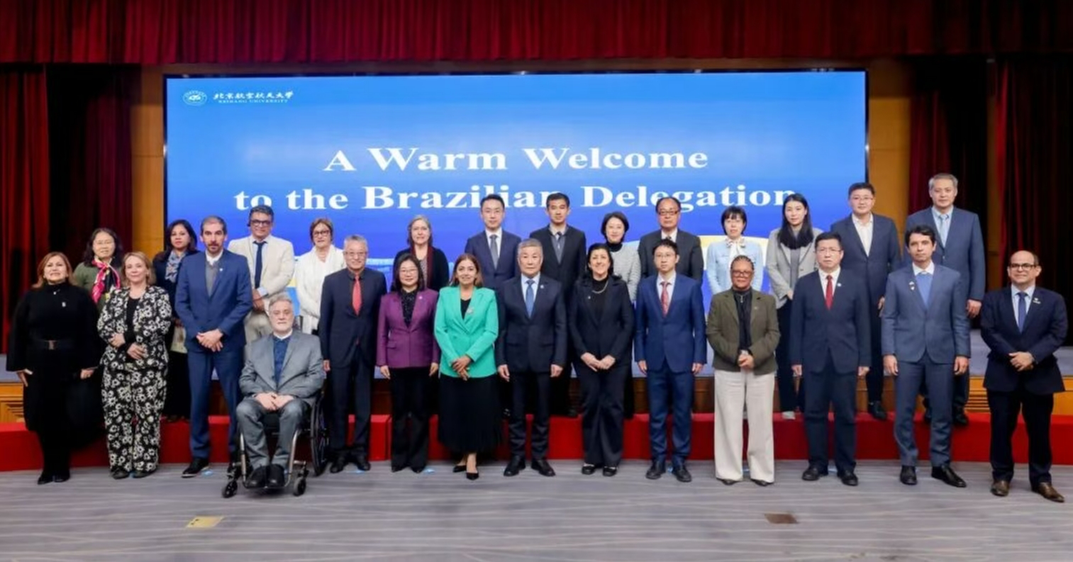 北航新闻网11月18日电(通讯员 时琳雅 姜全红 江悦/文 记者 邸白鹭/摄影)11月17日,巴西大学国际合作集团及巴西11所高校代表团访问北京航空航天大学,与北航签订一系列合作协议。北航党委书记赵长禄,副校长邓怡、吴江浩,中国驻巴西大使馆原教育参赞、教育部国际合作与交流司二级巡视员王志伟出席签约仪式。