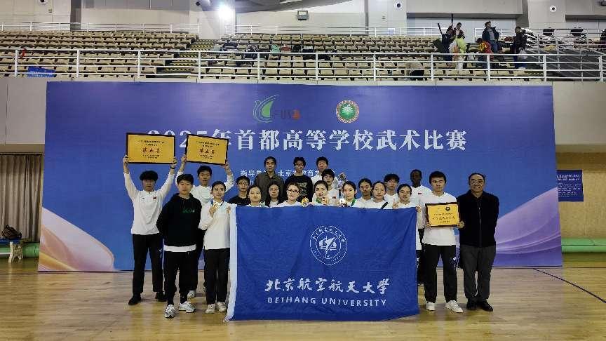北航新闻网11月19日电(通讯员 王逸玮)11月8日,由北京市大学生体育协会主办,北京理工大学承办,北京市大学生体育协会武术分会执行的2025年首都高等学校武术比赛在北京理工大学(良乡校区)举行。体育部薛泰来、王世龙两位老师带领北航武术队12名运动员参赛。经过一天的激烈角逐,共获得3金2银4铜12项前八名,女子团体总分第五名、男女团体总分第五名,并荣获“体育道德风尚奖”。薛泰来老师荣获“优秀教练员”称号,陆由荣获“优秀运动员”称号。