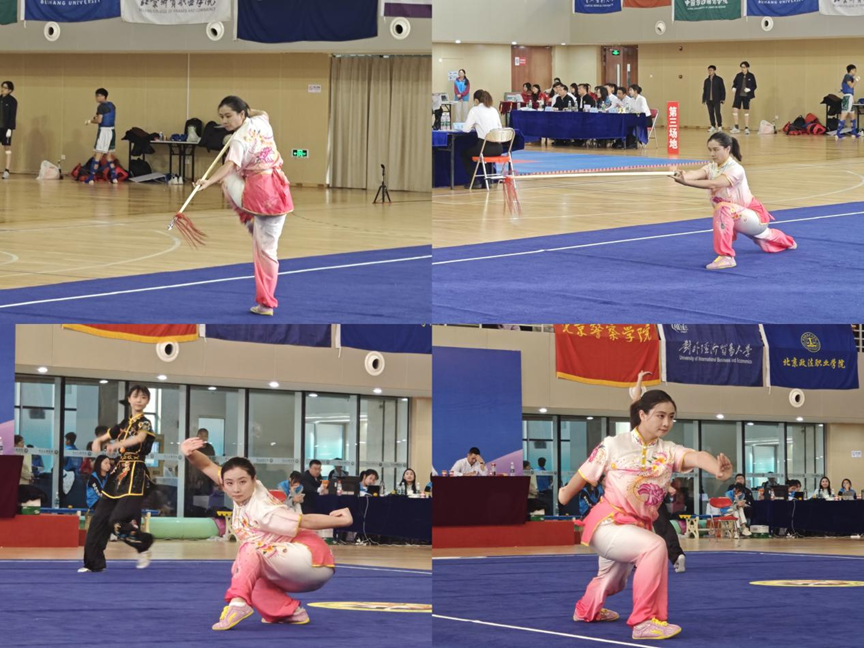 北航武术队以满腔的热情和坚定的决心奋力拼搏,展现出了非凡的斗志与风采。李今琪技惊四座、力压群雄,以扎实的基本功和出色的赛场发挥,斩获女子组初级棍术冠军、初级枪术亚军、初级三路长拳季军。