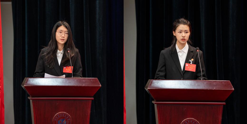 张雨禾代表第三十五届学生会作工作报告、舒婧焱代表第二十四届研究生会作工作报告
