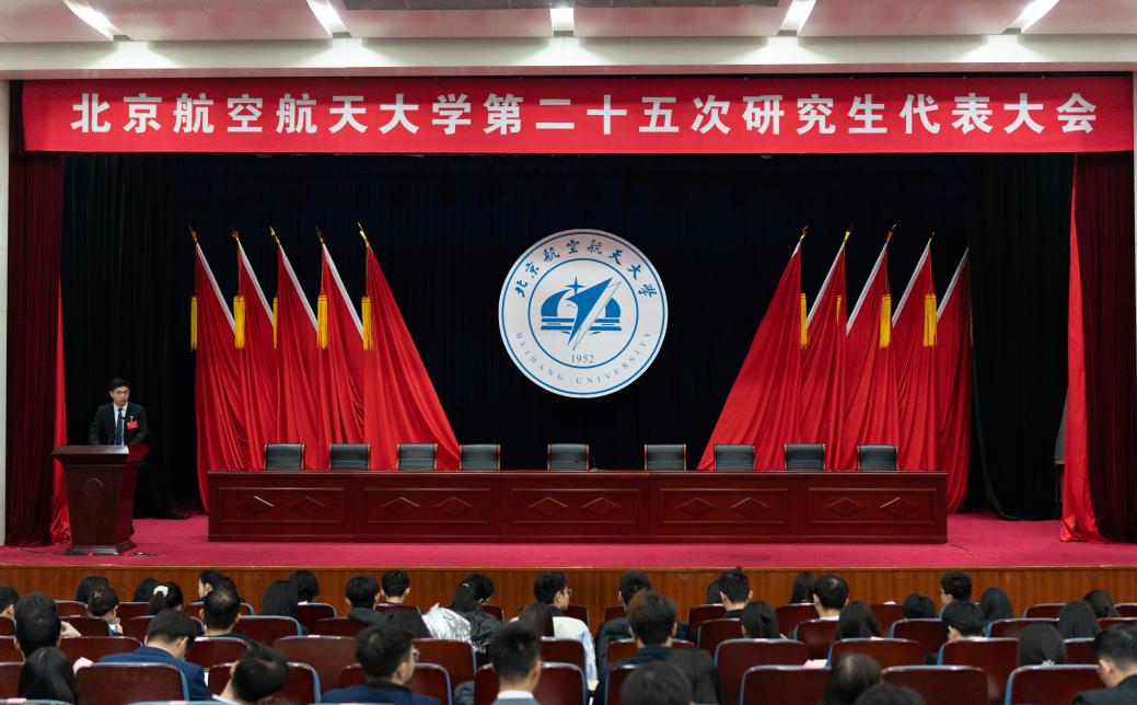 第二十五次研究生代表大会于学院路校区学术交流厅举行。会上审议并通过了北京航空航天大学研究生会章程(草案)、北京航空航天大学第二十五次研究生代表大会提案工作报告,完成了对第二十五次研究生代表大会研究生委员会委员、第二十五届研究生会执行委员会成员的选举。大会选举了刘然、吴淑涛、吴嘉明、张璐洋、郭颍为第二十五届研究生会执行委员会成员。