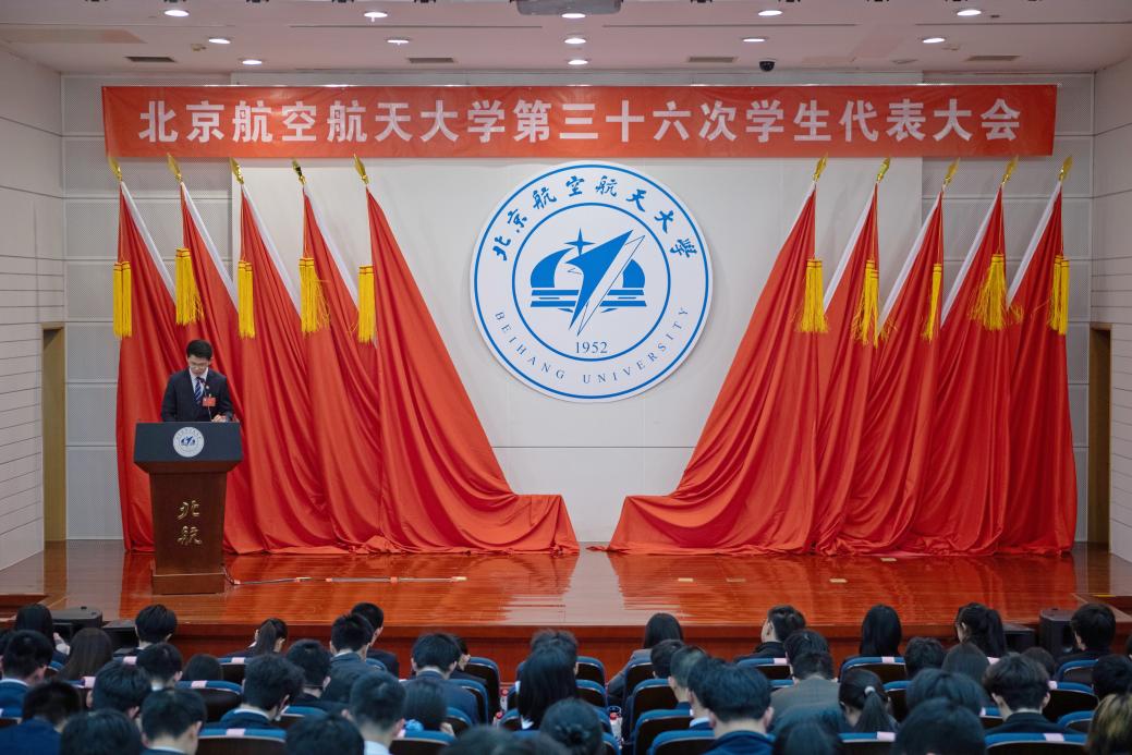 开幕会后,第三十六次学生代表大会于学院路校区新主楼第二报告厅举行。会上审议并通过了北京航空航天大学学生会章程(草案)、北京航空航天大学第三十六次学生代表大会提案工作报告,完成了对第三十六届学生代表大会常任代表、第三十六届学生会主席团成员的选举。大会选举了王远铭、孙睿阳、宋连熙、陈耶冰、范学成为第三十六届学生会主席团成员。