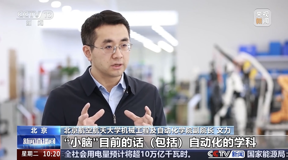 【同期】北京航空航天大学机械工程及自动化学院副院长 文力:要做出一个人形机器人,需要从学生如何从0开始来学习,从它的本体的搭建,机器人的小脑的控制,再到大脑的这种基于大模型也好,或者基于人工智能也好,它的推理规划,还有包括其他的一些任务的学习等。