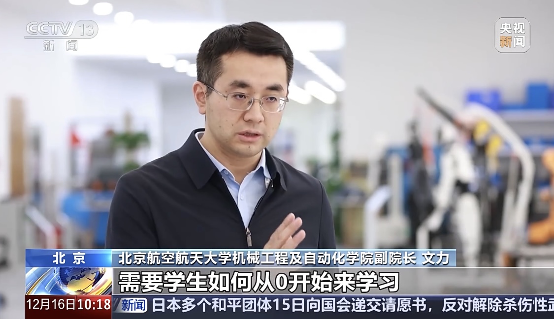 【解说】人才紧缺的背后是现有培养模式的短板,具身智能需要复杂的学科交叉,而目前在高校,人工智能、机器人、自动化等传统专业仍相对独立。学生若想制作一台智能机器人,常常需要跨专业借知识凑设备,知识体系难以系统化。