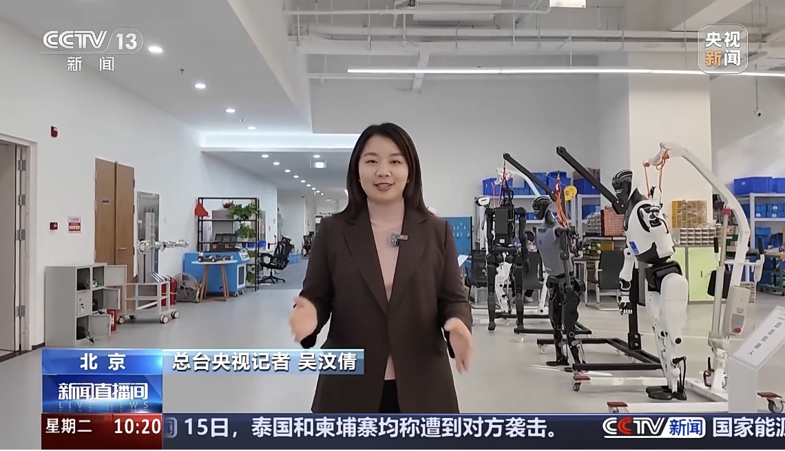 【同期】总台央视记者 吴汶倩:具身智能简单来讲就是给AI装上身体,让她像小朋友一样跌跌撞撞地学真本事,但它并不是机器人加AI的简单叠加,要实现真正的智能,得让他有眼睛会看,皮肤能感知,摔倒了知道疼,下次才能绕开坑。这背后是机械工程自动化、人工智能等多个学科的深度交融。