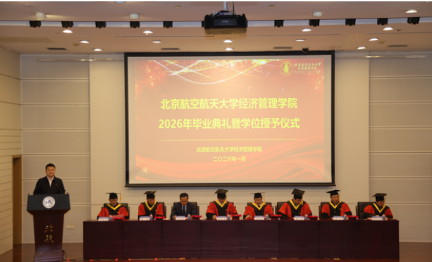 北航新闻网1月13日电(通讯员 安紫瑶)1月11日上午,经济管理学院召开2026年毕业典礼暨学位授予仪式。经管学院负责人,校友代表、学院学位评定分委员会代表、教师代表等出席典礼。学院2026届全体毕业生及毕业生亲友参加典礼。