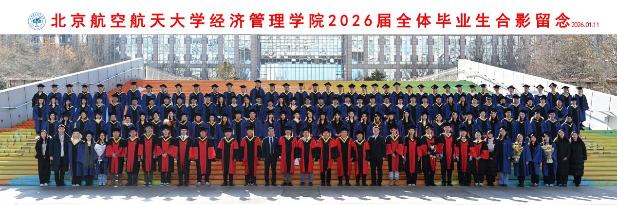 学位授予仪式结束后,全体毕业生与学院领导、教师代表齐聚新主楼前合影留念。一张张照片定格成最珍贵的纪念,这不仅是对一段求学岁月的总结,更是新征程的序章。2026届毕业生们必将带着北航经管人的使命与担当,以实干笃行诠释使命担当,在新时代的广阔舞台上绽放光彩,书写属于自己的华彩篇章!