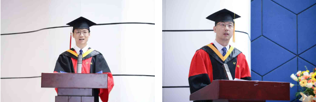 毕业生代表张楼悦向母校、学院、老师和亲友表达衷心感谢。他回顾了在校期间与同学们共同经历国家与学校的重要时刻,见证了“北航四系,王牌动力”的传承与荣耀。科研路上他深深体会到“静水流深”的力量,感恩学院与导师培养出坚韧不拔、脚踏实地的学术品格。他号召全体毕业生肩负起新时代航空动力人的使命,扎根奋斗、绽放芳华。教师代表邱璐向全体毕业生致以最热烈的祝贺。在送别之际,他以“三颗心”勉励全体毕业生:一是坚守报国之心,将个人梦想融入祖国发展,敢于创新、勇闯前沿;二是永葆赤子之心,保持对世界的好奇、对理想的纯粹、对生命的热爱,不失真诚与热忱;三是常怀感恩之心,将父母、师长所赋予的恩情化为前行的力量,以行动回馈家国。