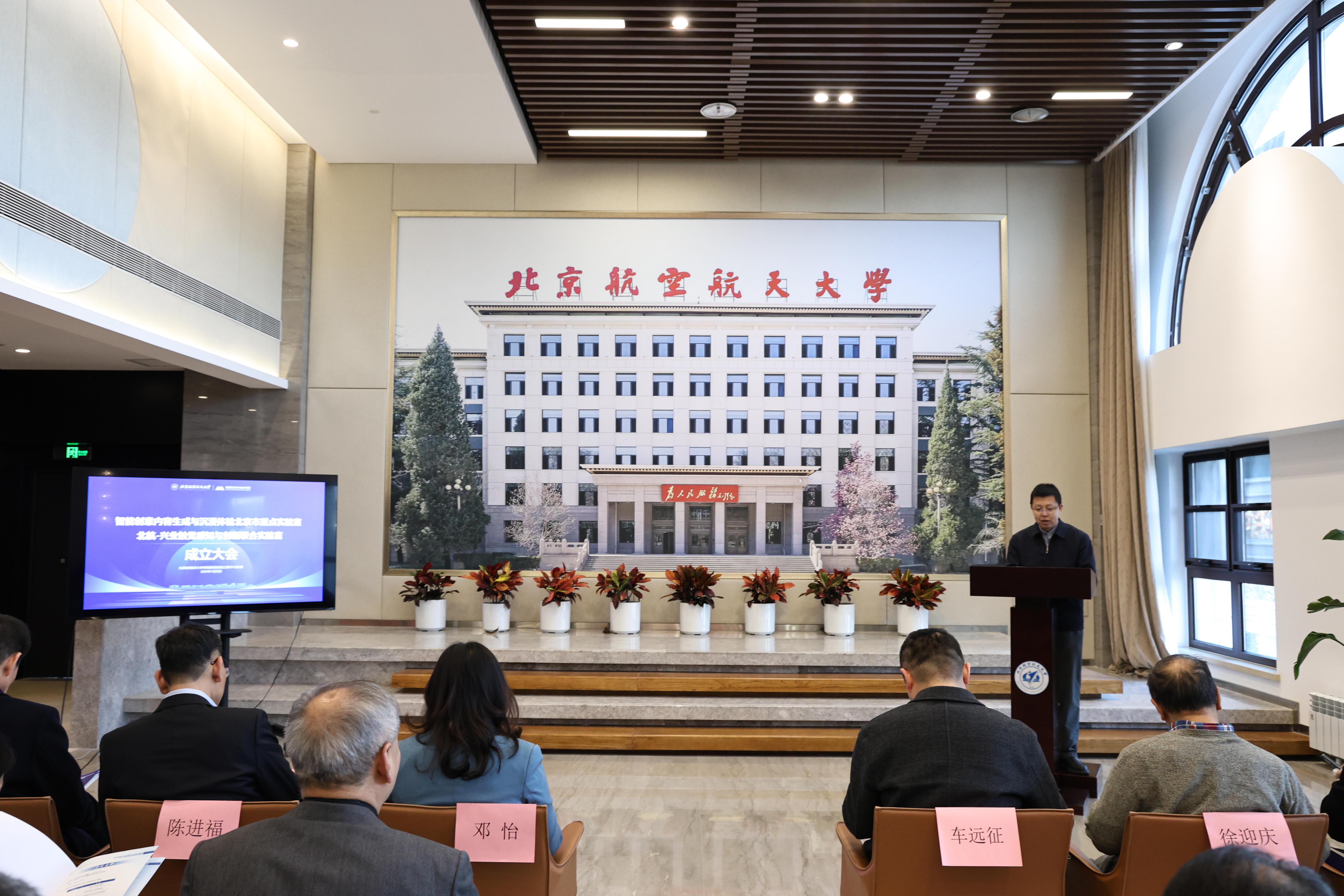 北航新闻网1月22日电(通讯员 孙振西)1月20日,“智能创意内容生成与沉浸体验北京市重点实验室”与“北航-兴业触觉感知与创新联合实验室”成立仪式在北航校友之家举行。北京市科学技术委员会、中关村科技园区管理委员会文化科技处(科普处)车远征、李新媛,晋江市人民政府副市长陈进福,兴业皮革科技股份有限公司总裁孙辉永,北京舞蹈学院副院长肖向荣,北航副校长邓怡,清华大学、中国传媒大学等高校专家学者,北航科研院、新媒体艺术与设计学院、机械工程与自动化学院负责人等参加成立仪式。