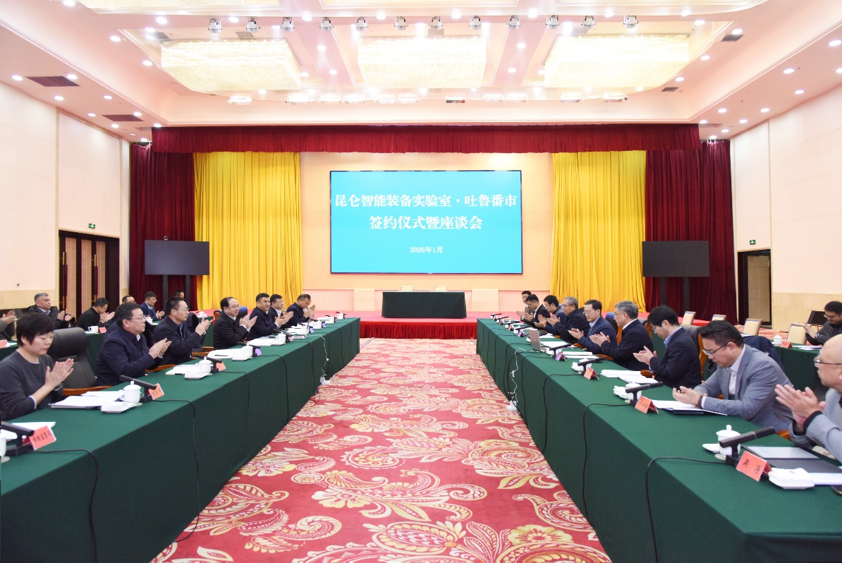 为进一步拓展应用场景,推动项目落地,王云鹏等一行先后到吐鲁番、哈密两市实地考察对接。1月22日,昆仑智能装备实验室与吐鲁番市人民政府举行战略合作协议签约仪式,中国工程院院士、昆仑智能装备实验室主任黄庆学与吐鲁番市副市长朱继坤分别代表双方签署了战略合作协议。校长王云鹏,昆仑智能装备实验室首席专家韩再明,吐鲁番市委书记文天平,市委副书记、代市长西尔艾力·外力出席签约仪式。