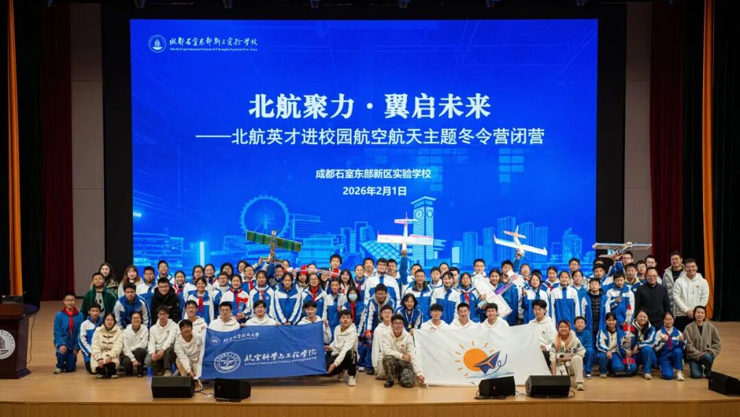 育暖航行实践队前往成都石室东部新区实验学校,围绕航空航天领域的前沿认知以及基本知识,开展了特色课程、趣味实践与主题调研三合一的航空航天科普冬令营活动,让中学生近距离感受航空航天产业的发展魅力。