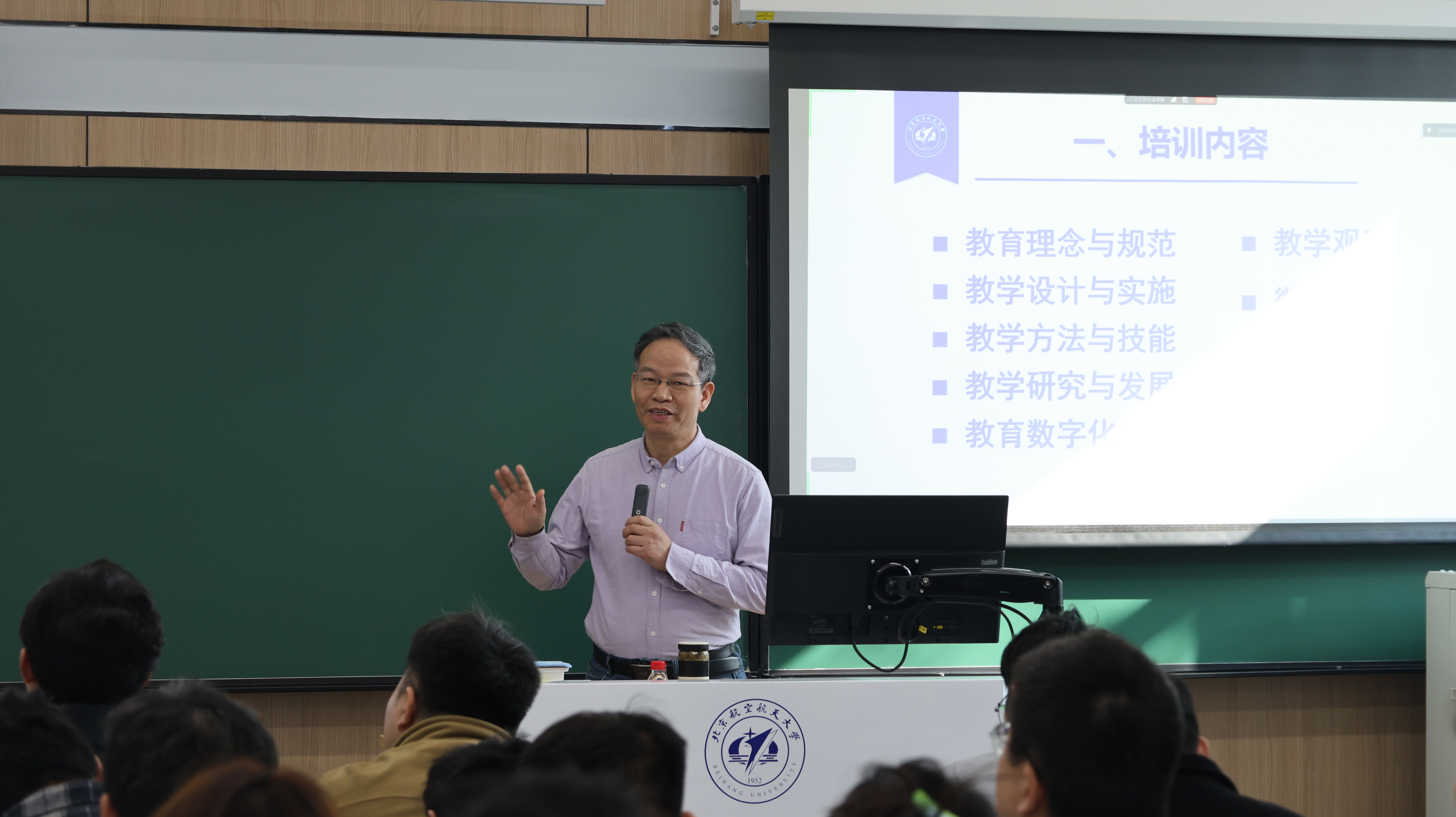 教务部部长钱政在讲话中指出,希望青年教师珍惜此次培训机会,将所学运用到今后教学中,提升教学能力。他同时强调,当前数字赋能给教育教学带来巨大冲击,教学方法改革迫在眉睫。他期望青年教师主动应对挑战,在遵循教学规律的前提下探索教学改革,助力北航人才培养质量提升。