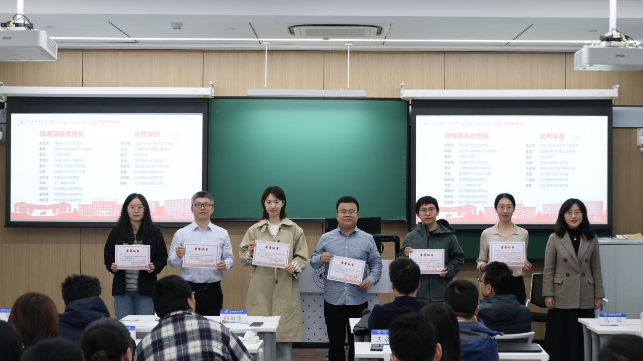研究生院副院长邵丽华为第十九期青年教师教学业务培训基础班微课演练获奖学员代表及优秀学员代表颁发了荣誉证书。
