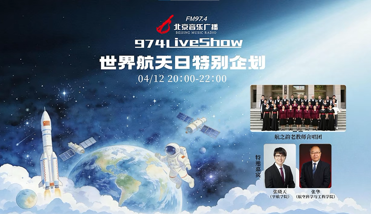 本次节目由北京音乐广播精心策划,特邀北航宇航学院副教授张晓天、航空科学与工程学院张华教授共同参与,打造集经典演唱、航天科普、人文访谈于一体的专题直播。“航之韵”老教师合唱团精神饱满、风采斐然,先后献唱《春风十万里》《我爱祖国的蓝天》《祖国不会忘记》《永不停航》等曲目,以深情歌声礼赞祖国航天事业,传递航天报国情怀。