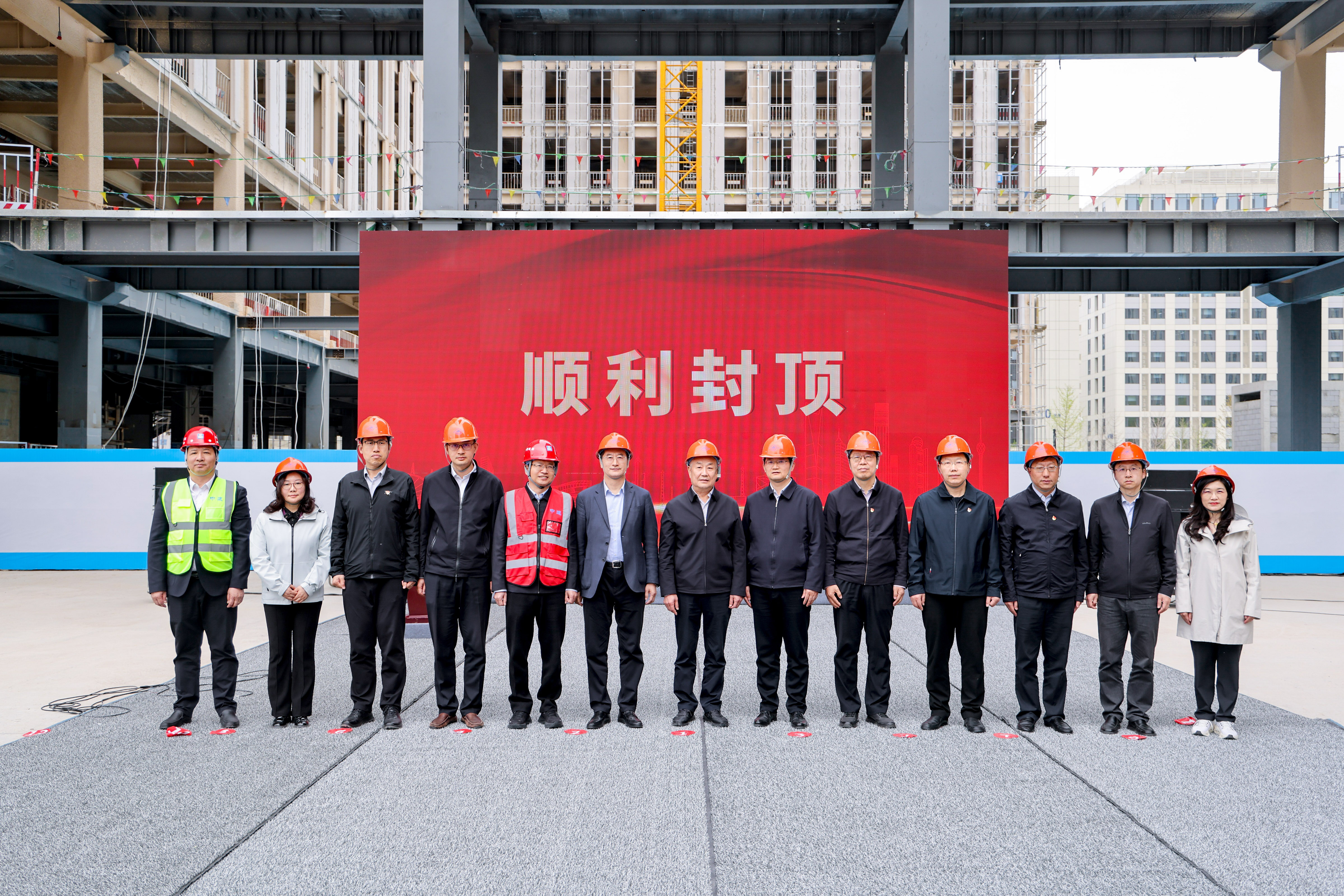 上午10时15分,随着最后一方混凝土浇筑完成,项目主体结构正式封顶,现场掌声不断,项目建设迎来开工以来最激动人心的阶段性成果。