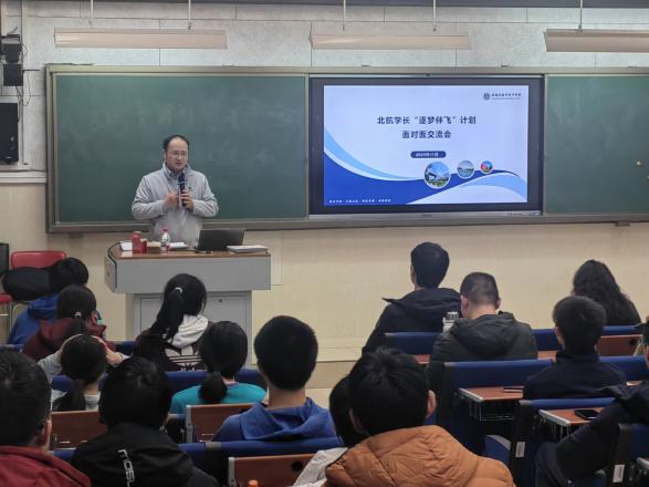 北航新闻网12月2日电(通讯员 王子瑜)为助力北航附中高三学生高效备考,同时为北航大一学生提供社会实践平台,推动构建“大中联动”育人体系,11月24日与26日晚,“逐梦伴飞”计划首次见面会在北航实验学校中学部小阶梯教室举行。48位来自北航各学院/书院的大一“启航梦拓”与附中高三学生结对见面,开展交流。