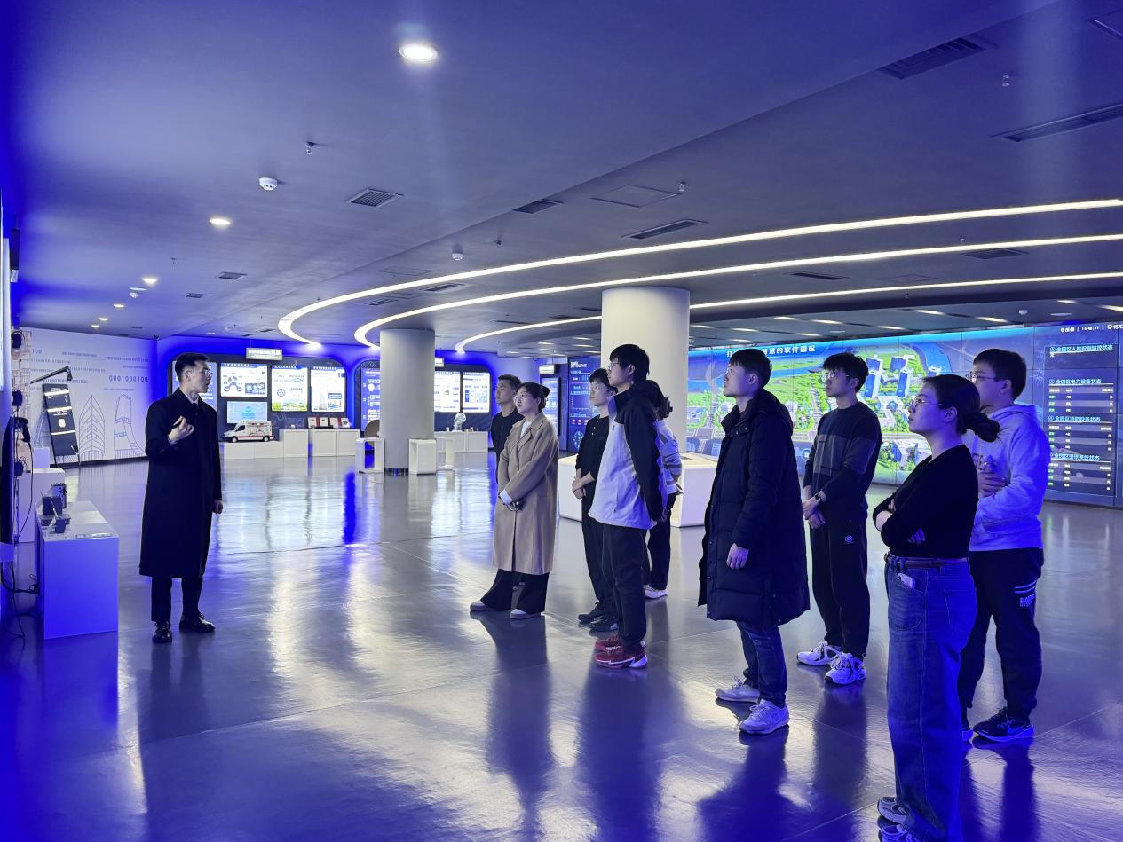 21日下午,师生一行前往天府软件园。天府软件园负责人带领同学们参观成都高新区数字经济服务平台展厅,让同学们全方位了解天府软件园的发展状况。