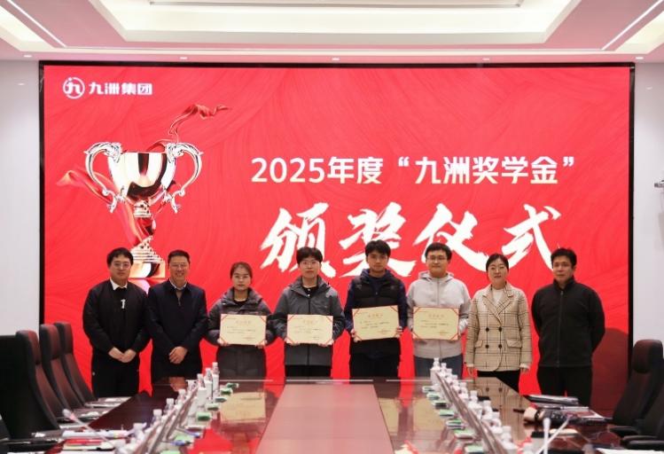 随后进行2025年九洲奖学金颁奖仪式,九洲集团党委副书记对师生一行表示欢迎,向师生介绍了集团的基本情况,并为2025年度九洲奖学金获得者颁发了证书。