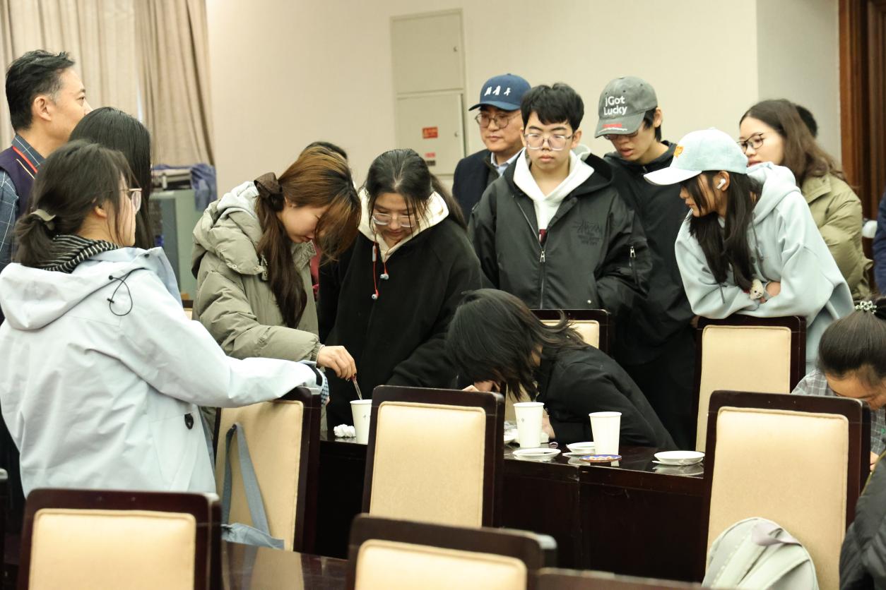 交流后,在珐琅厂工艺师的悉心指导下,同学们亲身体验了景泰蓝制作的关键步骤——“点蓝”。同学们对景泰蓝制作的繁复精细与匠心独运有了更为直观和深刻的认知。