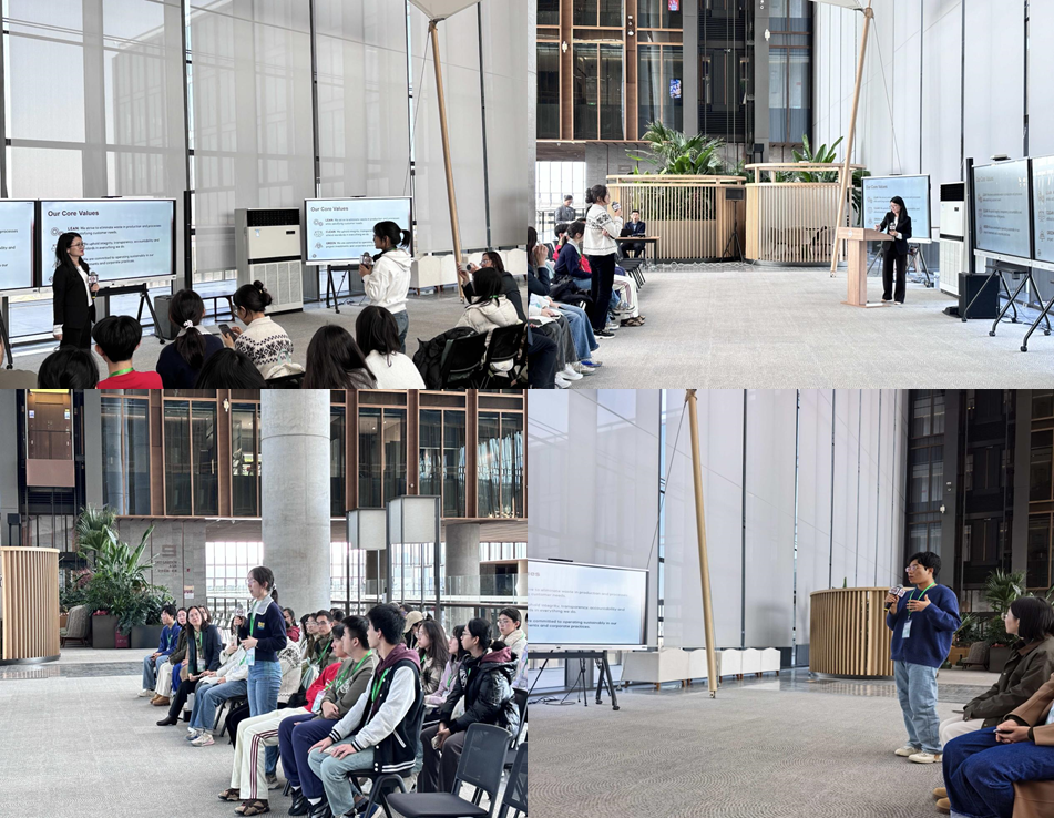 亚投行代表吴晓波女士为师生系统介绍了亚投行的成立背景、使命愿景、主要业务领域及其在全球基础设施投资中的重要作用,通过多边主义(multilateralism)、发展(development)和可持续性(sustainability)三个关键词为师生生动直观地呈现了亚投行的特质,并分享了亚投行在项目管理、多语言工作环境以及人才需求方面的具体情况,为在场同学提供了宝贵的行业洞见。