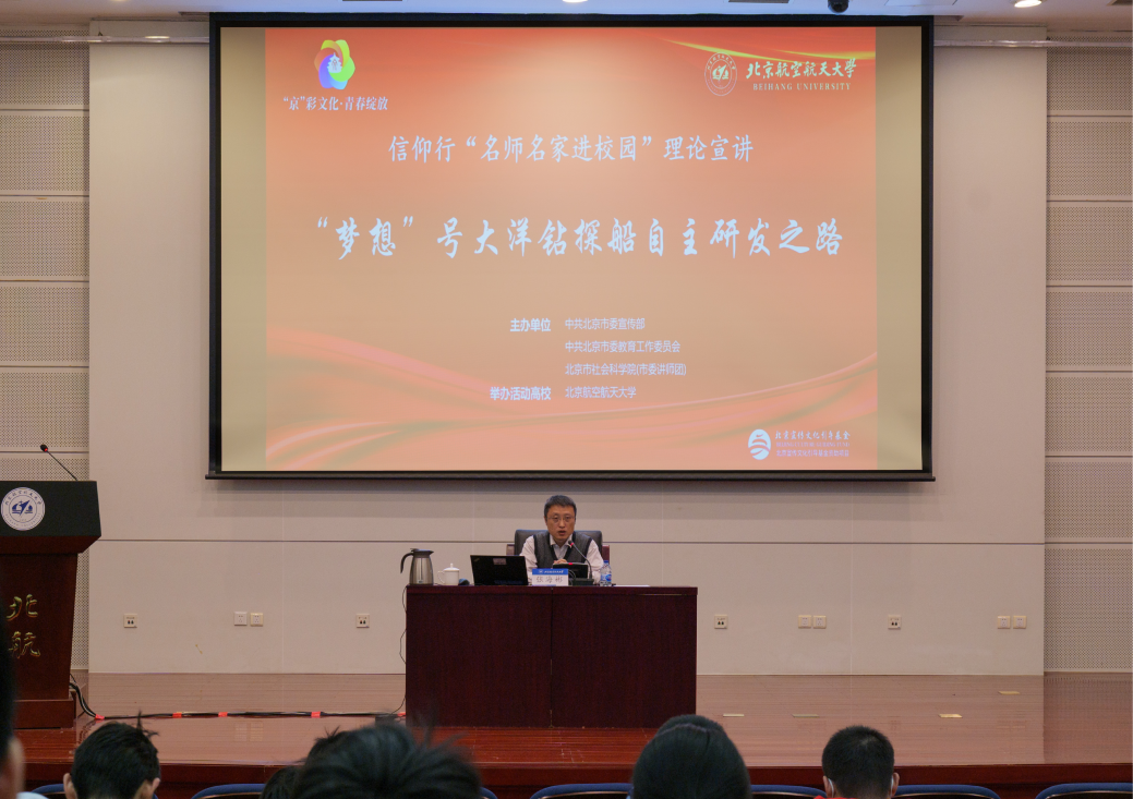 北航新闻网12月8日电(通讯员 宫凡 常嘉慧 田佳颖/文 刘备备/摄影)近日,中国船舶集团有限公司海洋工程装备学科带头人、我国首艘大洋钻探船“梦想”号总设计师张海彬做客北航,为师生带来主题为《信仰行“名师名家进校园”理论宣讲——“梦想”号大洋钻探船自主研发之路》的讲座。