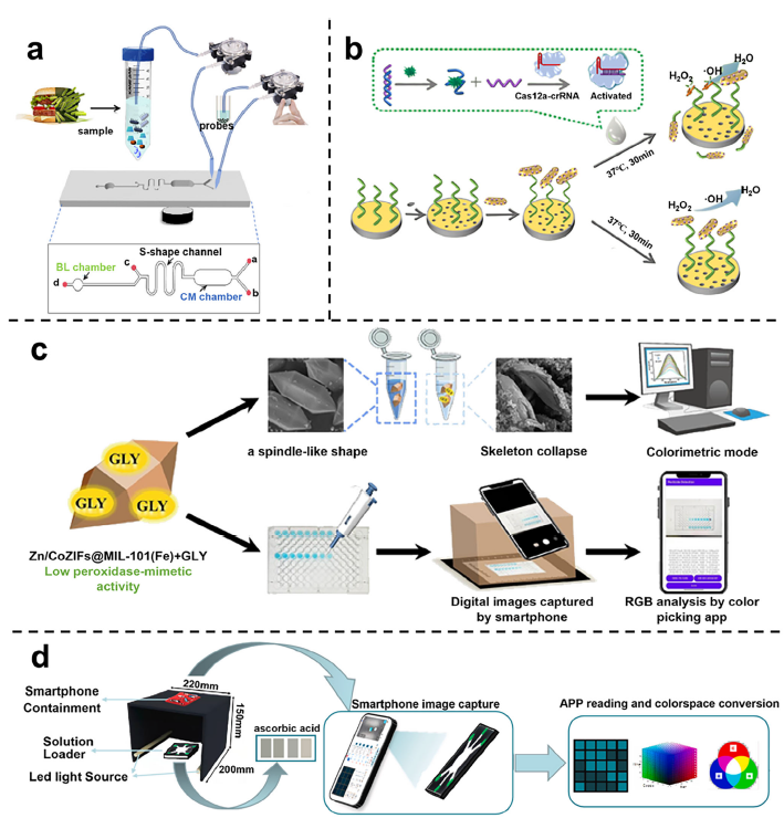 图4.面向食品检测的纳米酶-生物芯片系统示例。