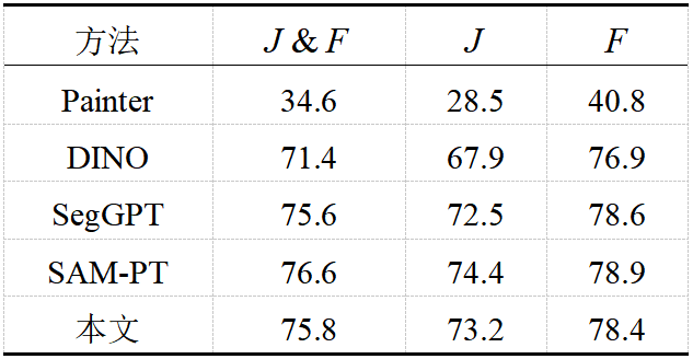 在DAVIS 2017验证集上,该方法在无需任何视频训练的条件下,取得了与其他主流方法相当的竞争力。在固定监控或稳定平台场景下,本方法的平均性能优于对比方法(表2、表3)。