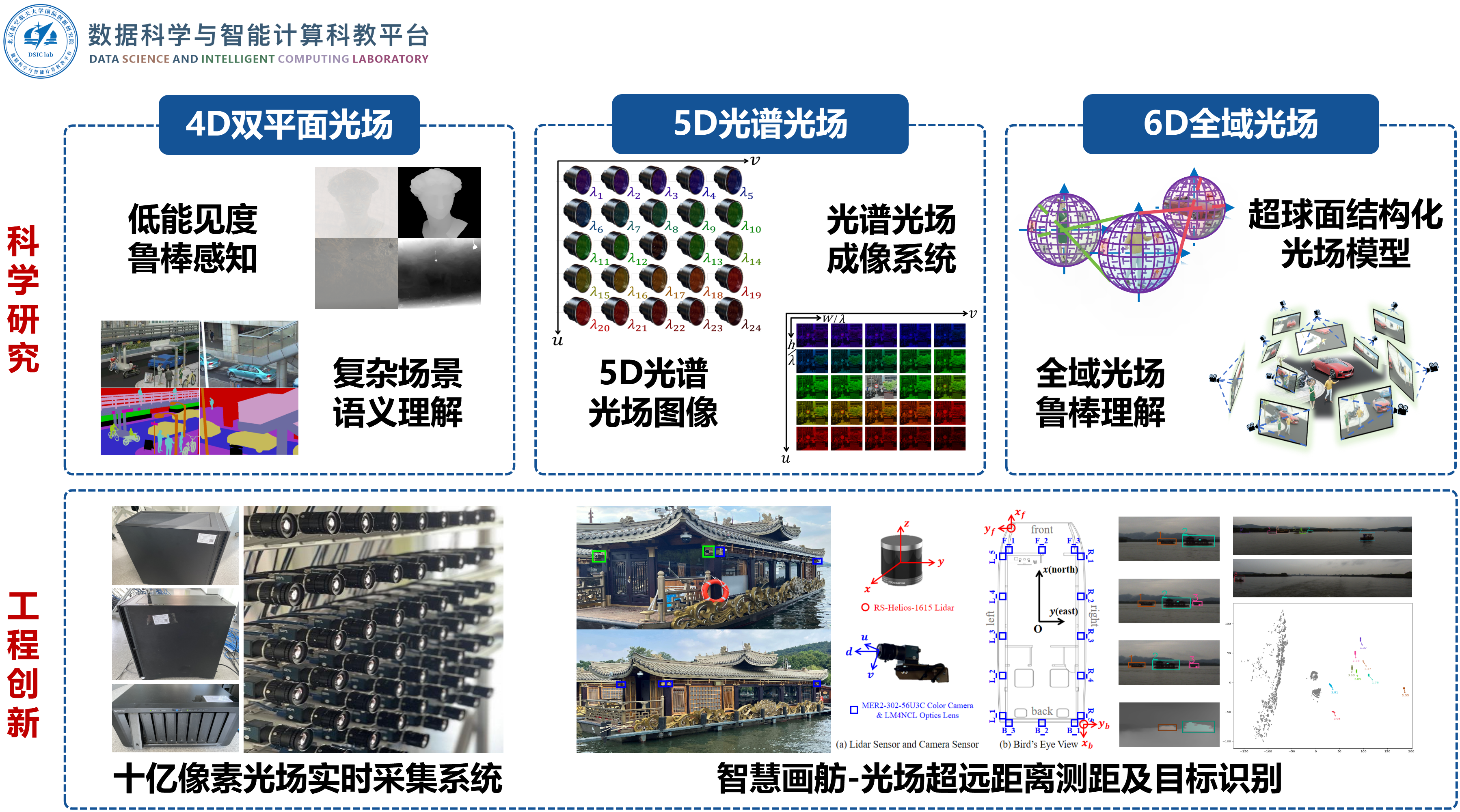 平台长期开展视觉理解、光场成像和AI医疗等领域研究,相关技术在西湖景区、重点医院等进行了推广应用。团队首先提出全域光场理论,围绕光场图像处理发表TPAMI、TIP、CVPR、ICCV等知名期刊/会议论文60余篇(其中,高被引论文10篇,热点论文4篇);出版国内首部领域相关教材《光场图像处理》;申请/授权专利20余项,相关专利已在西湖景区等多地落地实施;提出首个大规模光场语义分割数据集UrbanLF,是第三届国际光场研讨会LFNAT 2023 CVPR Workshop挑战赛(深度估计、语义分割)指定数据集,也是目前光场图像语义分割领域唯一公认基准数据集;所提出一系列方法长期在光场深度估计通用Benchmark位居前列,获CVPR光场语义分割国际挑战赛冠军;研究成果得到新华社、人民日报、人民网等主流媒体宣传报道。