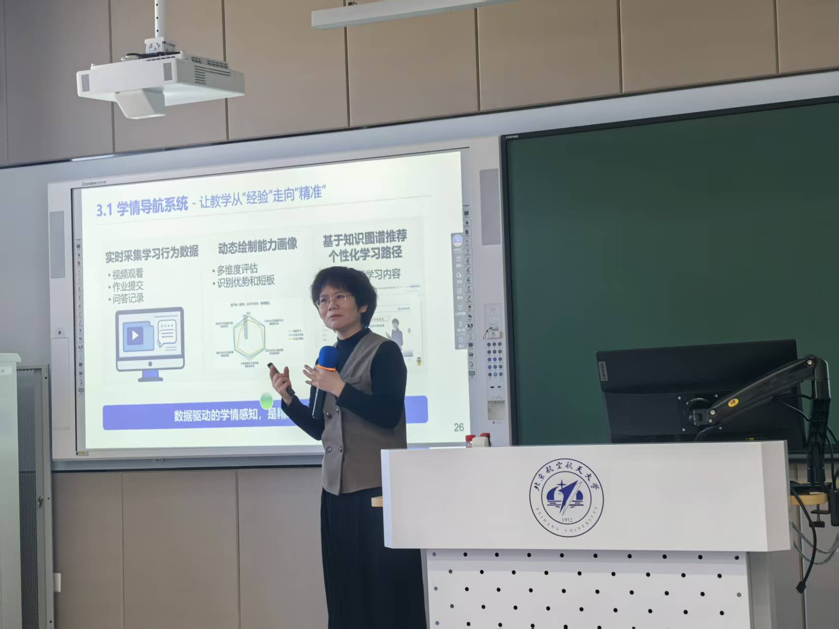 徐国艳系统阐述了智慧课程建设中的教学理念更新、内容重构、过程设计与评价改革等问题。首先,她探讨了AI如何提升教学效率和个性化学习体验,同时也讨论了AI在教学中的作用与局限性,以及教师在面对AI技术时所面临的挑战,如教师角色的转变、教学内容的更新和评估方法的多样化。随后,她以“机器学习及智慧交通应用”课程为案例,讨论了教育技术平台的选择与应用,以及如何通过智慧课程建设来适应教育信息化的趋势。
