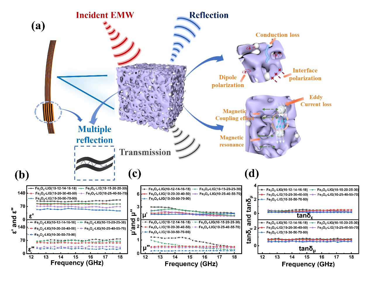 北航新闻网4月9日电(通讯员 王丹)近日,机械工程及自动化学院仿生与微纳系统研究所罗斯达教授团队在《Chemical Engineering Journal》期刊发表论文《Electromagnetic-dual-gradient laser-induced graphene/Fe3O4composites with synergistic gradient-patterning for advanced electromagnetic interference shielding》。通过创新性地构建集频率选择表面(FSS)图案与多层电磁双梯度结构于一体的激光诱导石墨烯/四氧化三铁(LIG/Fe3O4)复合材料,将轻质碳基材料的总电磁屏蔽效能提升,同时保持了极低的二次反射损耗,证明了兼具高屏蔽效能、低反射与优异环境适应性的新型屏蔽材料具有重要的应用价值。