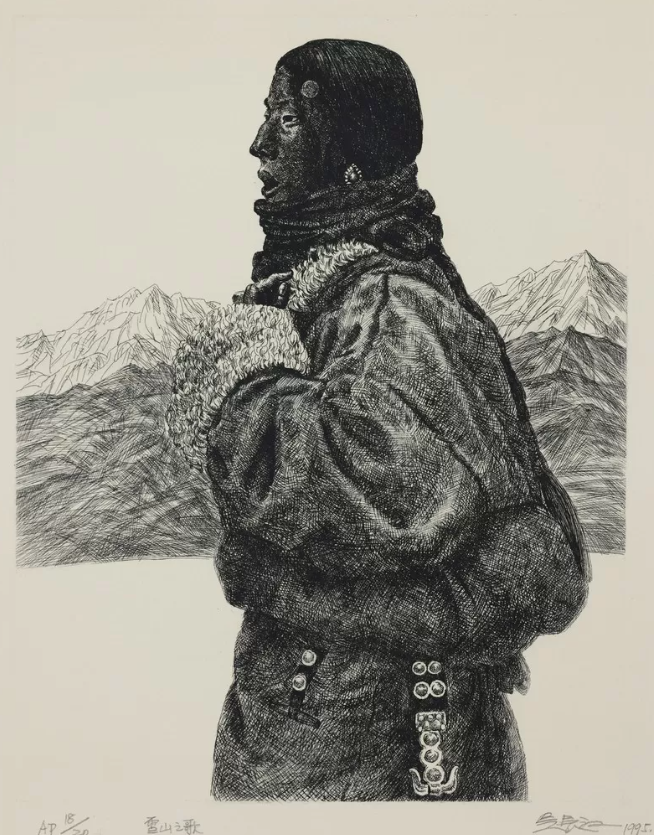 吴长江《雪山之歌》铜版画 60cm×40cm 1995年