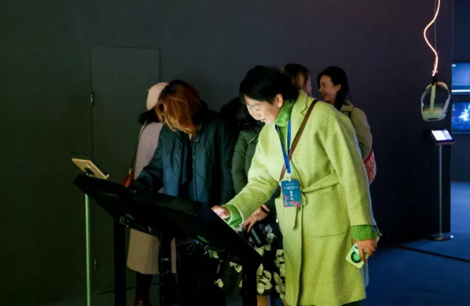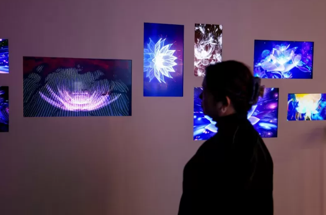叶风介绍,“光影苍穹:数字艺术展”聚焦科技与艺术融合创新,汇集18位数字艺术家,涵盖人工智能、体感交互、沉浸式影像等前沿形式。展览围绕宇宙探索、人文关怀、人机关系等主题,展现数字时代艺术新样态,旨在推动科艺交叉创新,为观众提供多维度的审美与思想体验。