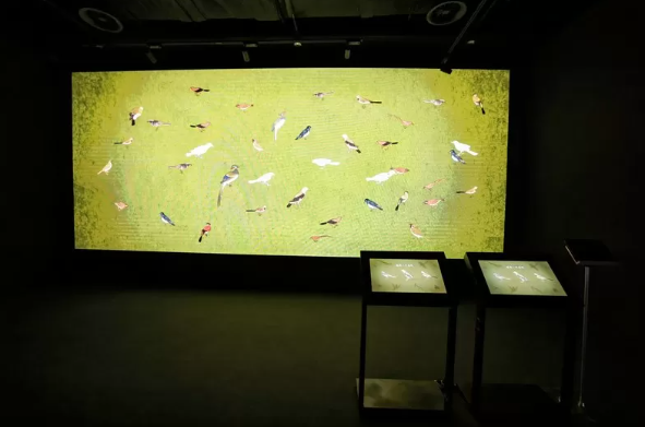 靳军 团队 《描摹与共生:今日珍禽图》 互动影像装置 7m×3m 2025年