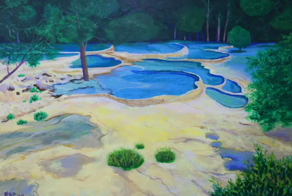 赖圣予 《春来湖水绿如蓝》 综合材料 110cm×160cm 2025年