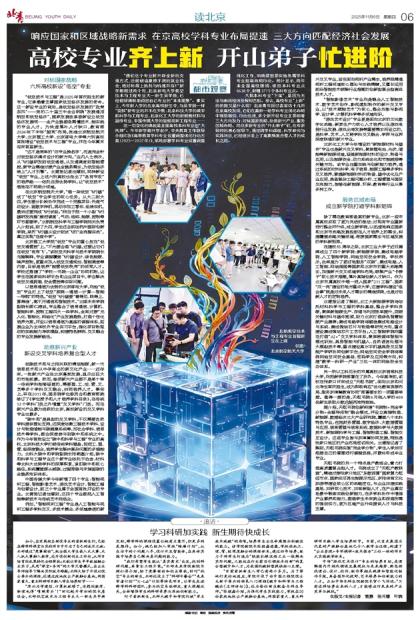如今,在京高校各新设专业的首批新生们,已经在跨学科课堂与实战项目中开启了自己的成长之旅:北邮通过“竞赛驱动”,把全国大学生嵌入式大赛、无人机大赛融入教学,还开设创新创业工作坊,从项目培育到成果转化全程帮扶;北航让学生早早就接触企业实习,采用“课堂+车间”的工学交替模式,在企业导师指导下解决实际技术难题;北科大除了开设以院士牵头的课程,还通过校地校企产教融合基地,将国家重大、重点科研项目融入学生培养环节……