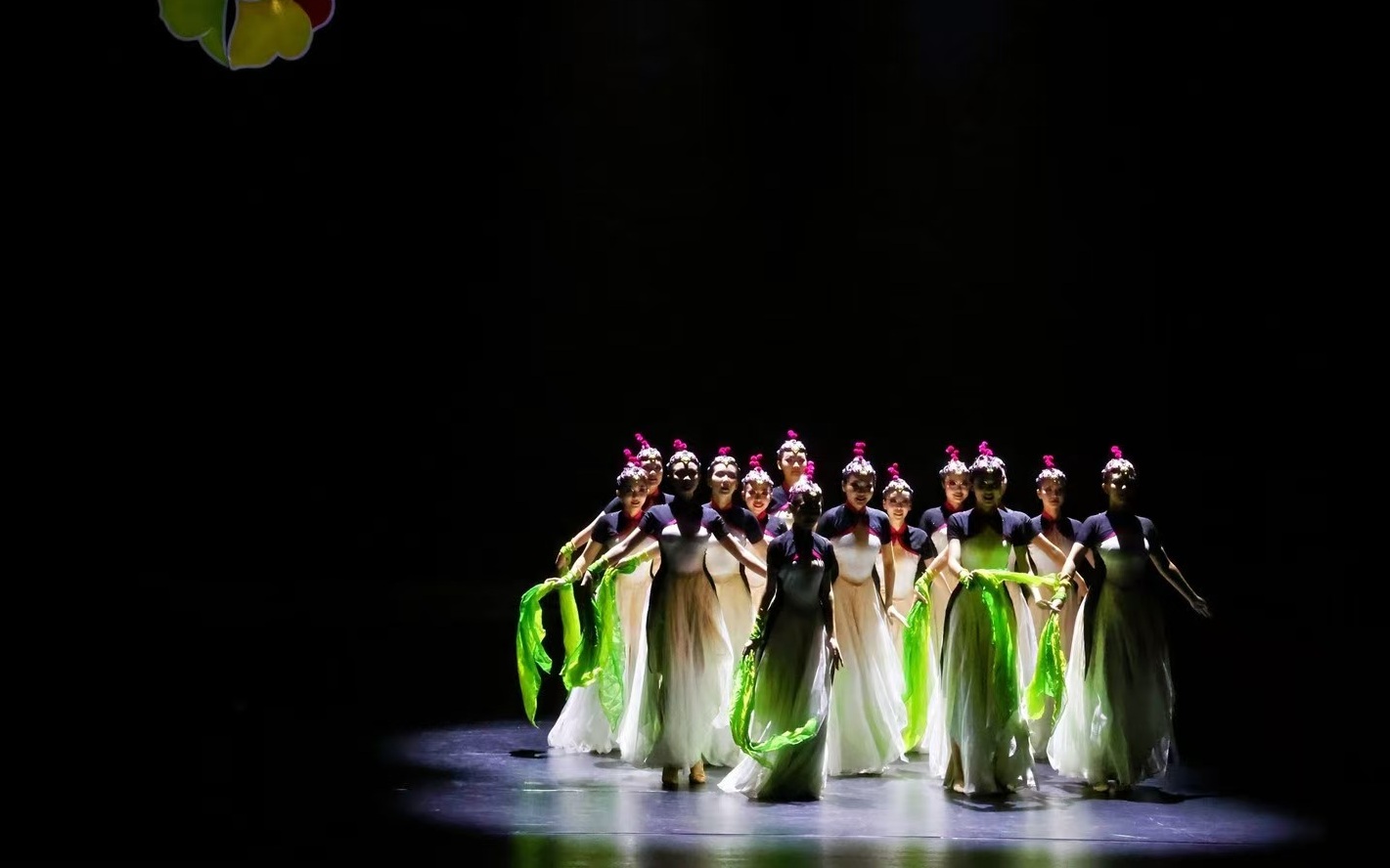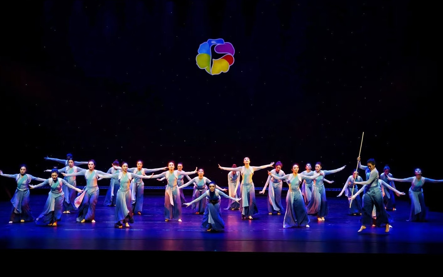 在展演首晚进行的中国舞展演中,15个群舞节目先后亮相。舞美灯光下,舞者们时而踏着八音盒中的旋律,化身为唐朝盛世中的陶俑;时而身穿群青色傣家少女服饰,翩跹于幽静山水间;时而化身伎乐飞天从壁画中苏醒,羽衣翩跹、绸带飘舞。