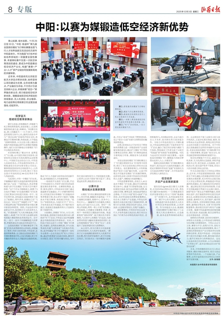 独特的自然资源、良好的空域条件、深厚的文化底蕴,让中阳县成为展现低空经济魅力的理想场所。中阳以企业为主体、赛事为平台、政策为引导、高校为支撑,通过成功承办国家级赛事,展示了县域经济借助低空产业实现差异化发展的路径探索,更是中阳县进一步促进体育与低空经济融合发展,激发城市新活力,提升区域竞争力的积极尝试。这也让该县的低空经济探索,从专业领域的“实用型应用”,逐步走向贴近民生的“场景化拓展”。