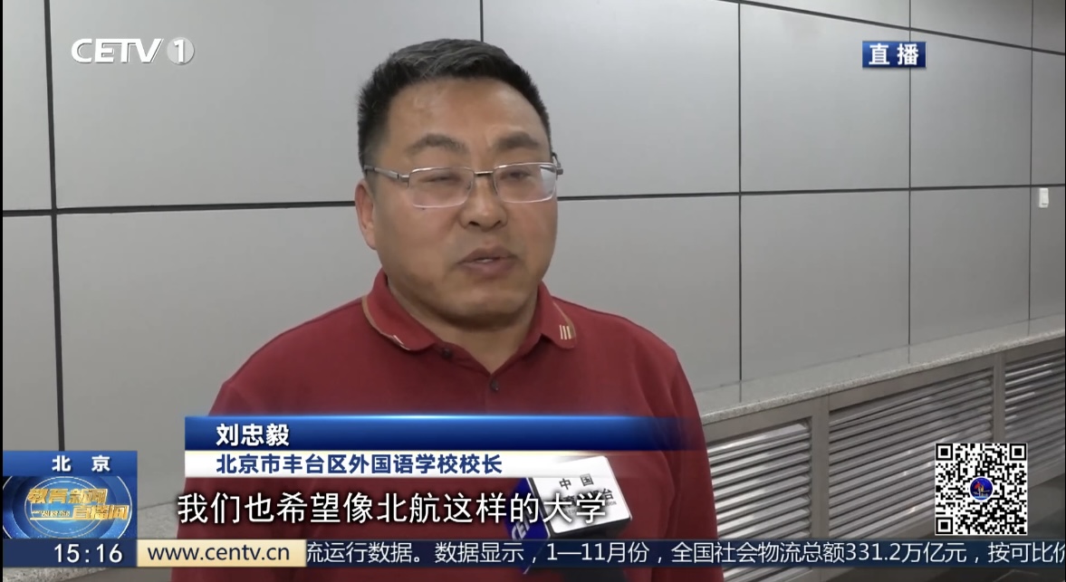 【同期】北京市丰台区外国语学校校长 刘忠毅:我们也希望像北航这样的大学,把他们的这种教育前沿的技术引入到我们中小学去,提高学生和老师的创新精神和学习能力。