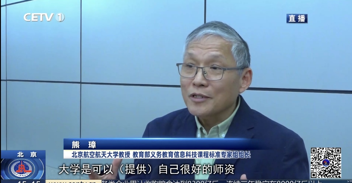 【同期】北京航空航天大学教授 教育部义务教育信息科技课程标准专家组组长 熊璋:大学是可以(提供)自己很好的师资,自己很好的实验条件,在中国大中小如果能够衔接起来,正好可以发挥中国的这种教育特色,这种教育的融合的力量。