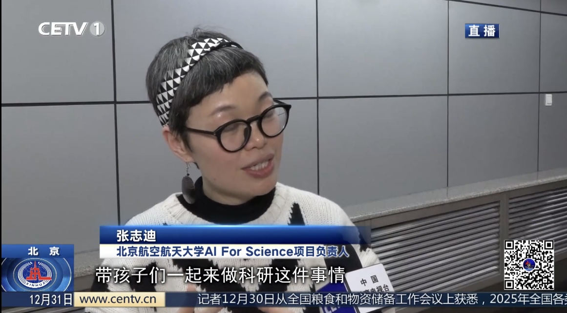 【同期】北京航空航天大学“AI for Science”项目负责人 张志迪:我们“AI for Science”是借着带孩子们一起来做科研这件事情去激发他们的兴趣,从而提升他们的认知,培养他们的思维与能力,最终实现他的创造力。