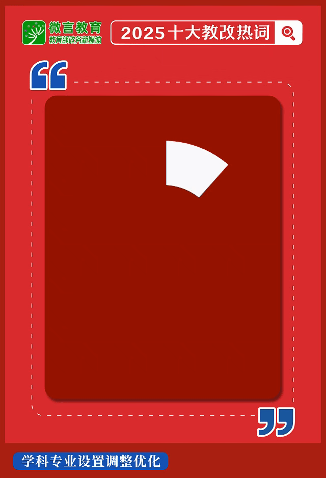近日,教育部新闻办联合国家语言资源监测与研究中心推出“2025十大教改热词”,展现教育强国建设的生动图景。今天,让我们一同走进“2025十大教改热词”系列解读第四期,本期聚焦热词“学科专业设置调整优化”,跟教育小微一起来看——