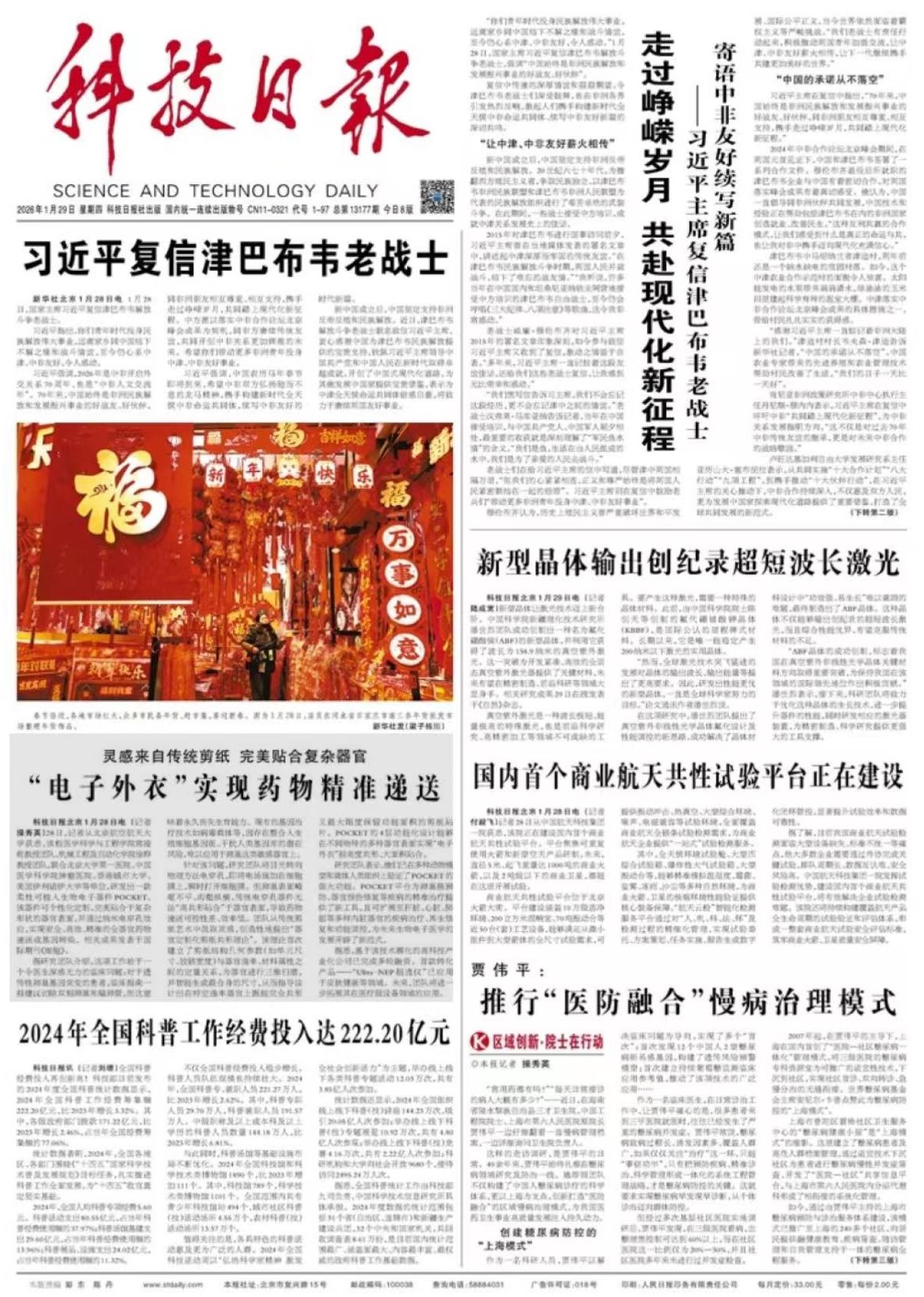 《科技日报》2026年1月29日头版报道: