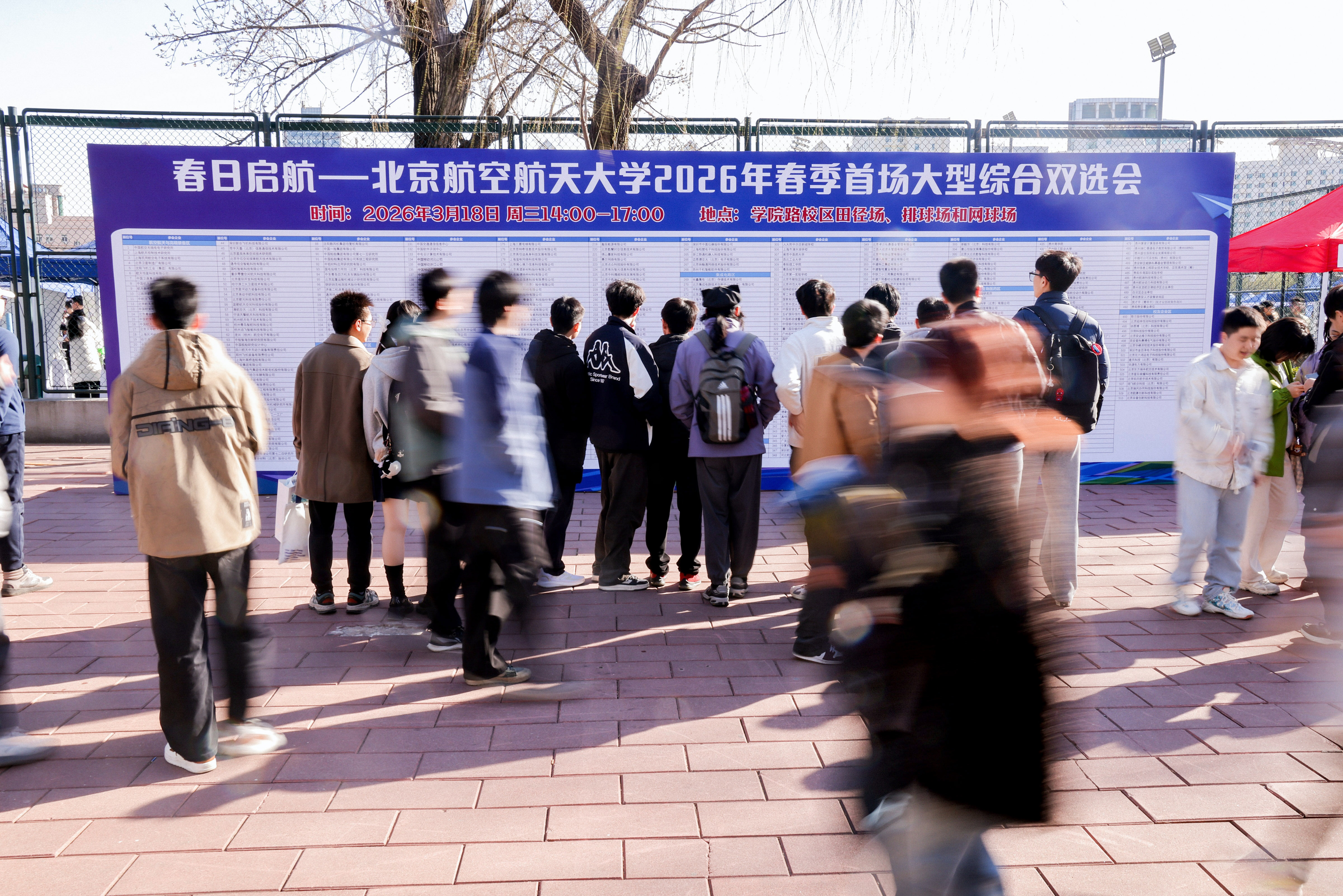 3月18日下午,北京航空航天大学2026届毕业生春季首场大型综合双选会在学院路校区启幕。本次双选会以“聚力拓岗 精准赋能”为主题,首次实现线上线下融合联动,首次采用大型分区布展模式,首次引入区域协同组团招聘,依托数字化赋能与校政企深度联动,精准搭建高质量供需对接平台,全力护航毕业生更充分、更高质量就业。